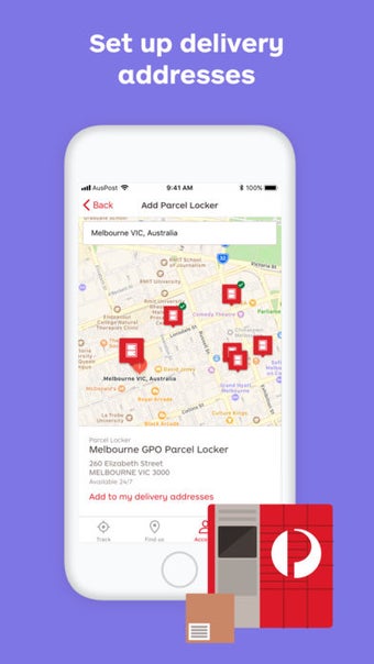 بالإضافة إلى ذلك، يمكن طلب ترك الطرود المؤهلة للتوقيع في مكان آمن (تظهر الطرود المؤهلة في التطبيق)، ويمكنك بسرعة مسح ودفع الفواتير الخاصة بك. يتيح لك التطبيق أيضًا العثور على الرموز البريدية عندما تكون خارج المنزل، والعثور على مكاتب البريد القريبة وصناديق البريد في الشوارع. مع Australia Post، يمكنك أن تحمل مكتب البريد في جيبك وتدير تسليماتك وفواتيرك أثناء التنقل.